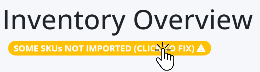 On your inventory overview page, click on the "SOME SKUs NOT IMPORTED" button under the title. This will show you the SKU Import Errors and for each error, which platform is it on and what is the error that occurred.